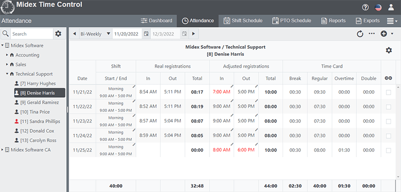 Midex Time Control lets you set rules for attendance rounding, break deductions, overtime, paid time off, sick days, shift scheduling and other parameters. With multi-company support, the rules can be set up on a company-wide basis, by department or even subdepartment.