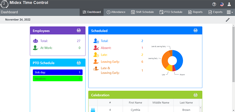 Whether you’re a small company or a large corporation, Midex Time Control has all the features you need to track employee time and attendance.