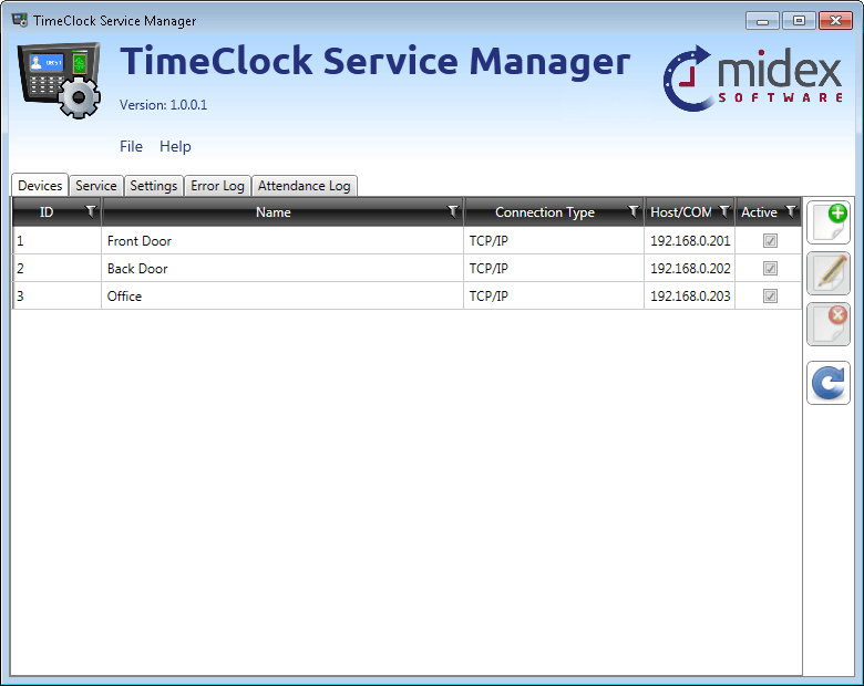TimeClock Service is designed for customers who already have an existing Time and Attendance software and are looking to integrate their existing time and attendance time clocks. This service will download attendance logs from your Time Clock and save it to the database. In addition, TimeClock Service includes a built-in time synchronization.